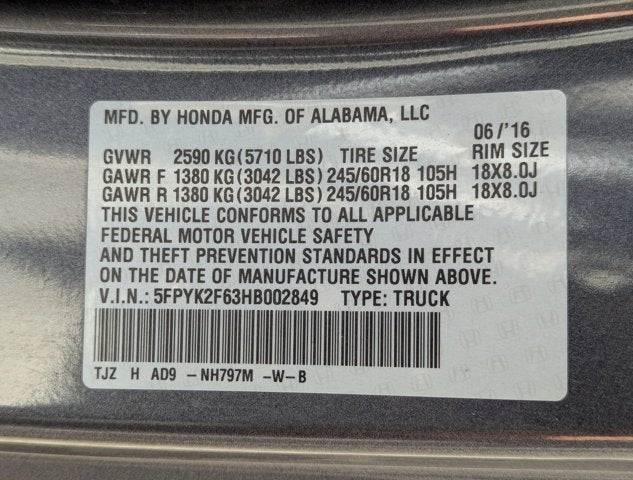 Gray 2017 Honda Ridgeline RTL-T RTL-T 3.5L V6 SOHC i-VTEC 24V 6-Speed Automatic 19/26 City/Highway MPG