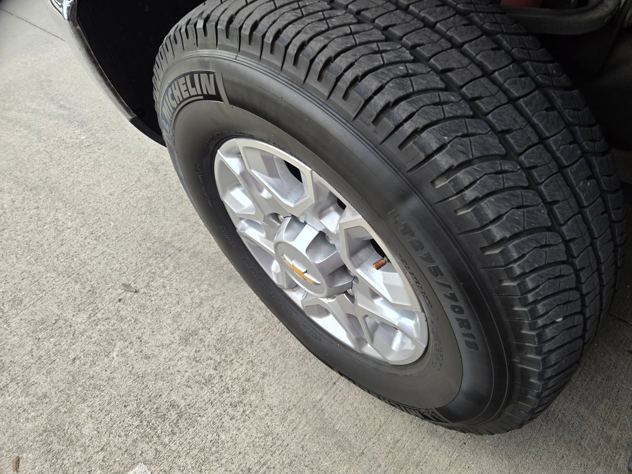 - Tires, LT275/70R18E all-terrain, blackwall (Not available with (ZW9) pickup bed delete.)