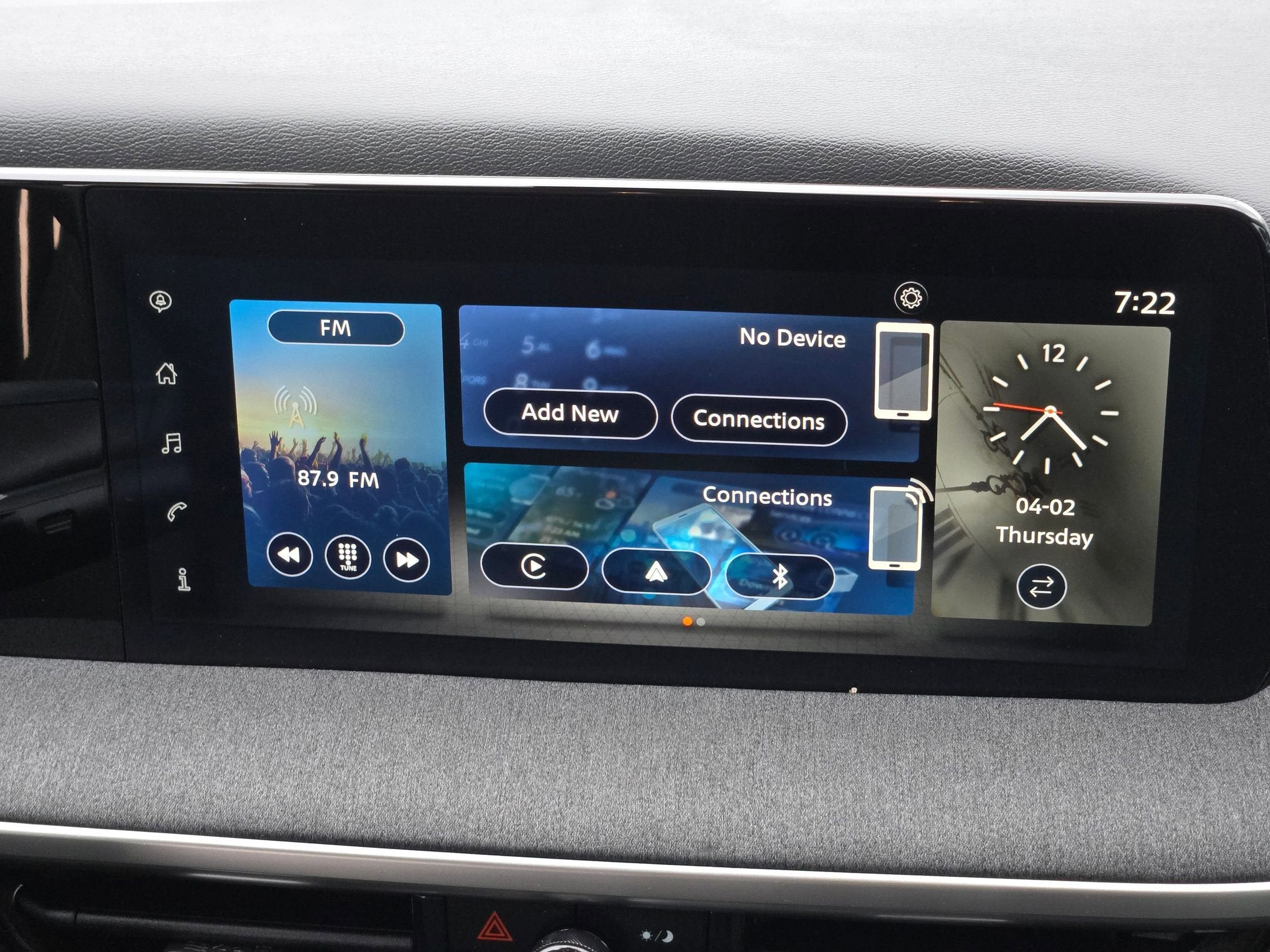 - Radio: AM/FM Audio System -inc: 12.3 color touchscreen display w/4 speakers, Bluetooth® hands-free phone system, streaming audio via Bluetooth®, audio and Bluetooth® steering wheel switches, USB C (data and charge) (front), NissanConnect featuring wireless Apple CarPlay, wireless Android Auto, Siri eyes free, SiriusXM satellite radio w/advanced auto features and hands-free text messaging assistant